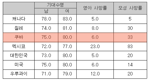 쿠바의 보건지표가 선진국 수준인 이유가 바로 가정의들을 중심으로 한 1차의료의 성과에 있다(아래표 참조).