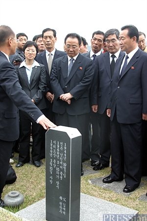 남북 대표단은 이날 오후 3.15 부정선거에 맞서다 희생된 인사들의 시신이 묻힌 3.15 국립묘지를 방문했다. 북측 대표단은 위령탑 앞에서 헌화한 뒤 묵념을 하고 4.19 혁명의 발화점이 됐던 김주열 열사의 묘를 참배했다. 1960년 당시 마산상고 1학년생이었던 김주열 열사는 이승만 정권의 3.15 부정선거를 규탄하는 시위에 참여했다가 마산 앞 바다에서 눈에 최루탄이 박힌 채 떠올라 4.19 혁명의 도화선이 됐다. 북측 대표단은 김주열 열사의 묘 앞에서 남측 대표단의 관계자로부터 당시 상황에 대한 설명을 들었다. 리충복 6.15공동선언 실천 북측위원회 부위원장은 남측 관계자들의 설명을 듣고 "김주열 열사에 대해 우리도 잘 알고 있다"고 말했다. 3.15 국립묘지 참배를 마치고 나오던 북측 대표단 가운데 한 사람도 소감을 묻는 기자의 질문에 "북측 사람들은 4.19 혁명을 비롯해 남측의 역사에 대해 잘 알고 있다"며 "김주열 열사와 같은 분들의 뜻을 후세 사람들이 잘 이어가야 한다고 생각한다"고 말했다. 남북 대표단은 이날 오후 7시부터 창원종합운동장에서 남북 노동자 축구경기를 연다. 북측은 김정수 책임감독과 엄진호 주장 등 19명의 평양철도 노동자 축구단이 경기에 임하며, 남측은 김성견 감독(한국노총)과 이평재 주장(민주노총) 등 20여 명의 양대 노총 조합원들이 선수로 뛴다. 그 뒤 대표단은 오후 9시부터 창원호텔에서 축하만찬을 갖고 노동자대회 둘째 날 일정을 마무리한다. 북측은 이번 대회에 조선직총 중앙위원회 원형국 부위원장을 단장으로 하고 조선직총 관계자 32명과 축구 선수 및 임원, 취재진 등 60여 명의 대표단을 파견했다. 남측은 민주노총 500여 명, 한국노총 300여 명의 임원 및 지역본부 관계자들이 노동자대회에 참석하고 있다. |