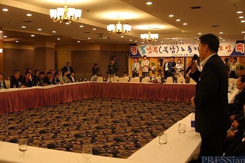 4월 30일 오전 10시로 예정됐던 남북노동자대표 상봉모임은 실무협의 마무리 문제로 북측 대표단의 입장이 늦어지는 바람에 10시 40분에야 시작할 수 있었다. 이에 즉석에서 양대 노총 간 인사와 소개가 이어졌다.