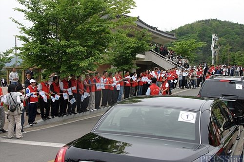 북측 대표단이 나타는 곳이면 어디든 등장하는 환영인파