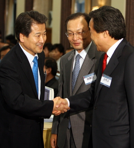 이해찬 전 총리는 손 전 지사와 상극의 위치에 있다. 적극적으로 친노 진영과 노무현 대통령을 끌어안아야 한다는 게 그의 대통합론이다. 그가 이날 "기회주의자에게 결코 이 나라를 맡길 수 없다"고 한 대목은 한나라당을 탈당한 손 전 지사를 겨냥한 것이라는 해석이 중론이다.
