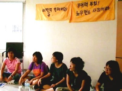 또 이들은 "이번 사태의 근본적인 원인은 지난 7월 1일 시행된 비정규악법에 있다"며 "비정규직 노동자들을 해고와 계약해지, 외주화로 내몰고 있는 '비정규직 양산법'이자 '비정규직 학살법'을 즉각 폐기하라"고 촉구했다.