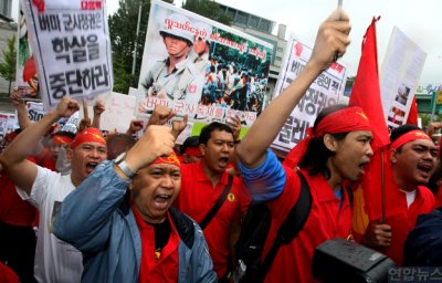국내에서도 30일 서울 한남동 주한 버마 대사관 앞에서 200여 명의 버마인과 국내 인권,사회단체 활동가들이 참여한 가운데 버마 정부의 민주화 시위 강제진압 규탄 집회가 열렸다.