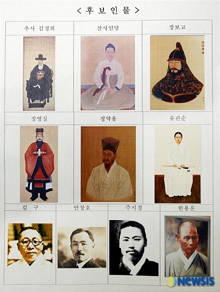 한국은행은 지난 8월 김구, 김정희, 신사임당, 안창호, 유관순, 장보고, 장영실, 정약용, 주시경, 한용운 등 10명의 후보군을 발표하면서 한국은행 홈페이지 등을 통해 일반 국민을 상대로 광범위한 여론수렴 작업을 벌인 뒤 인물을 최종 선정하겠다는 입장을 밝혔었다.