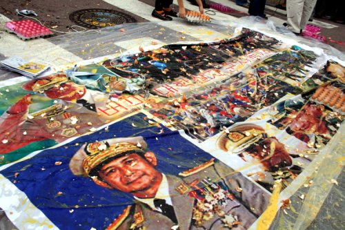 기자회견을 마친 뒤, 이들은 현 버마 군부정권의 최고 지도자인 탄 슈웨 장군의 사진에 달걀을 던지는 퍼포먼스를 벌였다.