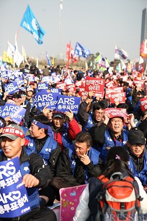 이에 앞서 이용득 위원장은 대회사를 통해 "사용자와 정부, 정치권에 대해 합리적인 설득만 가지고 될 일이 아닌만큼 노동자의 힘이 얼마나 무서운지 이번 대선에서 보여주자"며 정책연대의 당위성을 강조하고 ARS 총투표 참여를 호소했다.