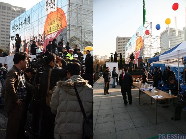 비정규직법 후속대책 마련, 고용보험제도 개혁, 4대보험료 징수통합법 국회통과 저지 등 현안을 놓고 진행된 1부 행사 중에도 속속 대회장을 찾는 대선 후보들만이 관심을 독차지했다. 취재진도 대선 후보들의 이동에 따라 무대 옆과 무대 앞으로 오고 갔으며 마지막으로 연설한 이회창 후보까지 대회장을 떠나자 썰렁한 장면이 연출됐다.