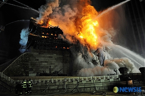 | ■관련 기사 : ☞한나라 "숭례문 화재, 노무현 정부 책임" ☞숭례문 복원 가능성 있나?…"뻥 뚫린 국민 가슴 어떻게 복원하나" ☞'숭례문 화제'…"방화 여부 아직 미확인" ☞숭례문 화재 '발화'에서 '붕괴'까지 ☞초기 진화 왜 실패했나? ☞'국보 1호' 숭례문 불…방화 용의자 목격 ☞국보 1호에 소화기 8대뿐…방화에 취약 |