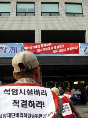 이 같은 소식을 접한 장애인 단체들은 노동조합, 그리고 생활인과 함께 '석암재단 비리 척결과 인권 확보를 위한 공동대책위원회'를 결성해 이들에게 힘을 실어줬다. 또 이미 밝혀진 횡령 사실에 대해 검찰에 고발 조치를 취했다. 최근 검찰의 기소는 이들 활동의 결실이었다. (☞ 관련 기사 : "입춘? 장애인 복지 수준은 아직도 한겨울")