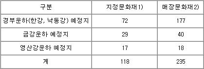 여기에 이날 이들이 발표한 금강, 영산강유역의 지정문화재와 매장문화재를 더하면 한반도운하 예정구간의 지정문화재는 118곳이며, 기본적으로 발굴조사를 해야하는 매장문화재는 235곳으로 확대된다. 한반도운하 예정지에 분포된 문화재가 최소한 350곳이 넘는 것이다. 국민행동 측은 "문화재청이 보고한 것 이외에도 실제 공사가 진행되면 매장문화재 현황은 훨씬 더 늘어날 것"이라고 지적했다.