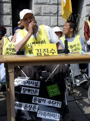 이날 발언에 나선 이 중 하나인 김진수 씨(59)는 "우리나라가 이제는 선진국이라고 하지만 장애인들은 여전히 1980년대 후진국을 살고 있는 것 같다"며 "아무리 작은 것이라도 우리에겐 누려야 할 행복이고 권리"라고 강조했다.