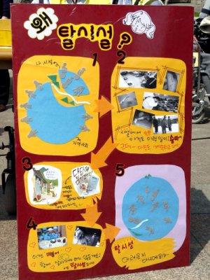 "밖에도 마음대로 나갈 수 없었어요. 사회 적응 훈련이라고 해서 1 년에 한 두번 정도만 나갈 수 있었어요. 맨날 방에만 누워있었죠. (…) 사실 지금도 선생님은 가지 말라고, 농성하러 다니고 자고 그러면 몸 상태가 더 굳어진다면서 말리세요. 하지만 내 몸 안 좋으면 전화하겠다고 그러고 나와요. 지금까지 죽어서 살아왔는데, 한번 죽지 두번 죽나요? 사실 시설에서 절대 살고 싶지 않아요. 갈 곳만 있으면, 주거지라도 있으면 어떻게든 나와 살고 싶어요."