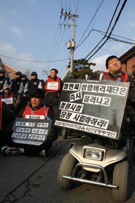 "얼마 전 남산에서 오세훈 시장이 축사를 하는 '사회복지인 남산걷기 대회'에서 기습 피켓팅을 벌였다. 장애인 복지시설 문제를 해결하라며 2년전부터 요청했던 면담을 해달라는 요구였다. 시장을 쫓아다녔더니 아랫선에서 이제야 만나자고 연락이 오더라. 그전에는 그나마 이런 연락도 없었다. 아무리 요구를 해도 그냥 생색내기, 대충 때우기 수준의 면담이었다."