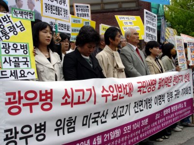 건강권실현을 위한 보건의료단체연합, 국민건강을 위한 수의사연대, 광우병위험 미국산쇠고기 국민감시단 등 15개 시민사회단체는 21일 청와대 근처 청운동사무소 앞에서 기자회견을 열고 "광우병 대재앙을 초래하는 미국산 쇠고기 수입을 즉각 중단하라"고 요구했다.