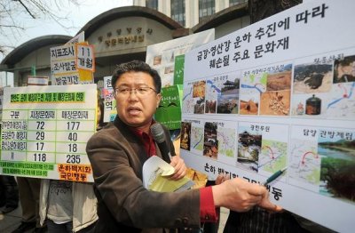 이에 대해 지난 1월부터 문화연대 등 시민·사회단체를 중심으로 '문화재 발굴 조사만 해도 수십 년이 걸린다'며 꾸준히 문제가 제기됐었다. 이들은 운하를 추진하려면 철저한 문화재 조사는 물론이고 현재 한국사회에는 이처럼 대대적인 문화재 조사를 책임질 수 있는 인력, 예산, 시간 모두가 턱없이 부족하다는 사실을 구체적으로 지적했었다.