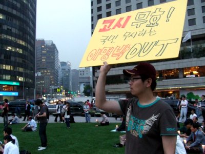 근무 중 휴식하러 나왔다가 행렬을 지켜보던 박모 씨는 "솔직히 이렇게 반대하는 사람이 많을 줄 몰랐다며 "누가 이런 일을 만들고 있는지 모르겠다"며 한숨을 쉬었다. 자신을 '386세대'라고 말한 박 씨는 "1987년에도 이랬는데, 오늘은 그때만큼 사람들이 많다"며 "이명박 대통령이 취임한 지 몇 달이나 됐다고 이렇게 사람들을 불안하게 만드나"라고 지적했다. 그는 "그때와 비슷해, 큰일이네"라며 혼잣말로 중얼거렸다.