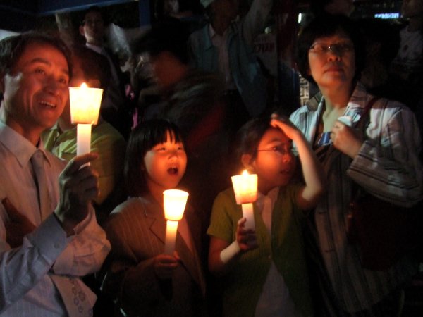 가족 모임을 촛불 집회에서 연 시민들도 눈에 띄었다. 세 자매가 함께 아이들을 데리고 나왔다는 김지현(44) 씨는 "쇠고기 문제만 가지고 이러는 건 아니다. 사람들이 허상을 본 것 같다. 우리 사회에 영웅이 없으니, 영웅을 만들었다가 허상이 꺼지고 나니까 확 터져나온 게 아닐까"라고 말했다. 그는 "당연히 (대통령이) 퇴진해야 한다. 전국에서 동시다발적으로 일어나고 있다. 국민들의 합의점은 하나다. '퇴진'!"이라고 강조했다.