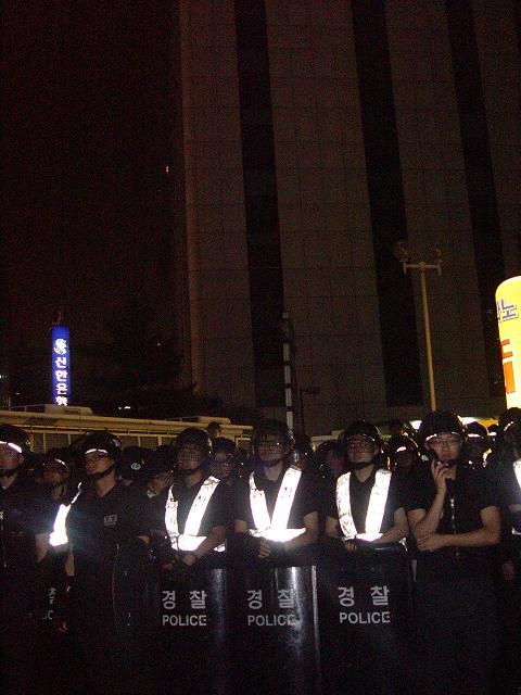 경찰 측에선 이미 한나라당사 주변에 경찰 버스로 차단벽을 만든 뒤 수백 명의 전경들을 배치해 시민들의 접근을 차단해 둔 상태였다. 시민들은 한나라당사 인근 사거리에 도착하는 과정에서 전경들과 가벼운 몸싸움을 벌이기도 했지만 심각한 충돌은 벌어지지 않았다.
