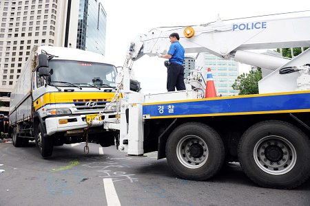 4시 30분 경 경찰 300여 명이 서울광장과 대한문 사이의 도로를 점거하고 견인차량을 동원해 음향과 방송차를 견인하려고 했다.
