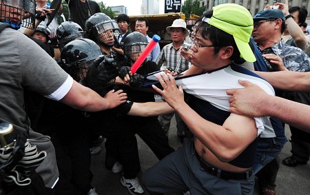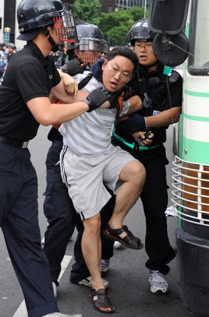 이후 전경들은 방패로 밀며 시민들을 서울광장 안쪽으로 밀어붙이고 있다. 5시 30분 현재 서울시청 광장은 전경차와 전경들로 인해 봉쇄됐고 경찰은 프레지던트 호텔 쪽 도로까지 점령한 뒤 광장 안으로까지 들어왔다.