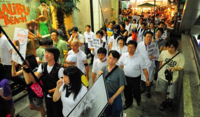 "조용히 하고, 촛불 끄고, 깃발을 내리고, 한 사람씩 가면 내보내주겠다."