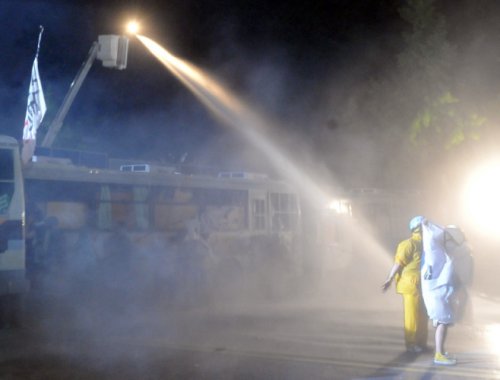 자정 무렵, 전경버스로 막고 있던 일본 대사관, 광화문, 조계사, 삼청동 등지에서 전경 부대가 쏟아져 나왔다. 위협을 주려 방패로 땅을 두드리고, 구령을 외치며 차도를 점령한 전경들에게 시민들은 순순히 자리를 내주며 물러섰다.