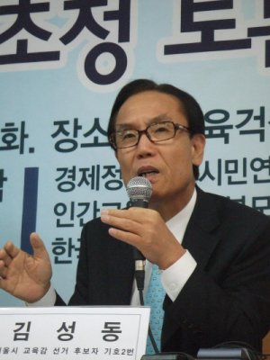 김성동: 보수니 진보니 하는 용어를 교육에 쓰는 것은 기본적으로 옳지 않다. 보수니 진보니 하는 것은 정치하는 분들에게 붙이는 용어인데, 교육을 정치활동으로 보는 관점에서는 그렇게 분류하는 것이 자연스러울지 몰라도 정당공천을 배제하고 있는 현교육감 선거에서 정치적인 용어는 부담스럽다. 언론에서는 보수나 진보 보다는 오히려 ('학습자의 발달'이라고 하는) 교육의 본질을 추구하고 교육 본연의 모습을 찾고자 하는 교육 정도(正道) 세력이 누구인지를 찾아야 하지 않을까 생각한다.