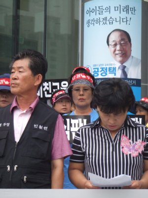 23일 전국빈민연합은 서울 중구 광희동 공정택 후보 선거사무소 앞에서 기자 회견을 열고 "부자들만의 교육 정책, 강부자식 교육 정책을 추구하는 공정택은 서울시교육감후보를 사퇴하라"고 요구했다. 진보신당도 이날 시의회 회의록을 공개하며 공 후보의 사퇴를 촉구했다.