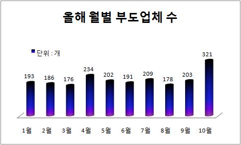 ▲실물 지표가 최악이다. 10월 부도업체 수는 3년 7개월 만에 가장 많았다. '아직 바닥을 확인하지 못했다'는 말을 증명하는 수치가 연말에 집중되고 있다. ⓒ프레시안