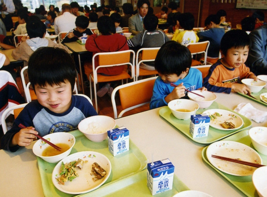 | ▲ 지역 먹을거리로 만든 음식을 맛있게 먹고 있는 일본의 어린이들. ⓒ프레시안 |