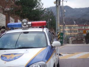 | ▲ 지난 15일부터 학부모들이 교사 징계 철회를 요구하며 1인 시위를 시작한 유현초등학교 앞에는 경찰차가 대기하고 있었다. 김경숙 교사는 "평소에 경찰차가 와 있는 건 보지 못했다"고 말했다. ⓒ프레시안 |