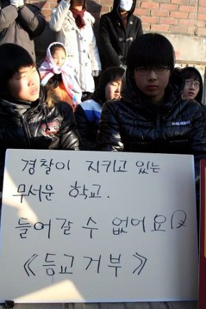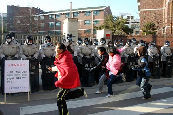 30여 명의 학부모 역시 수업이 끝날 때까지 '교실' 주변을 떠나지 않았다. 이들은 무엇보다도 수백 명의 경찰을 동원해 학부모와 교사를 막으려 하는 학교 측의 처사를 납득할 수 없다고 했다. 경찰의 숫자는 지난 17일 첫 출근 투쟁이 시작된 이후 매일 배 이상 불어나고 있었다.