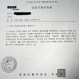영진위는 건물주에게 공문을 보내 "(앞서 전달된 관람객 정보는) 유출돼서는 안 되는 것이 비정상적으로 전달된 것"이라고 밝혔다. 그리고 영진위는 건물주에게 앞서 전달된 자료는 "무료 관람객이 포함된 착오 자료"라고 설명했다.