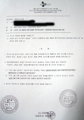 | ▲ CGV 측이 건물주에게 보낸 공문. 영진위 집계 자료는 단순 통계자료에 불과하여 정확성이 떨어진다는 내용이 담겨 있다. ⓒ프레시안 |