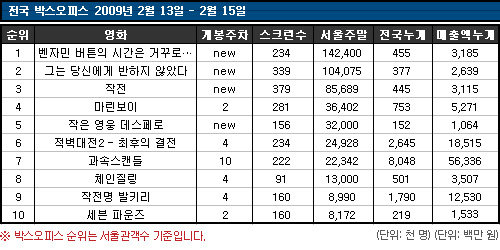 할리우드 로맨틱 코미디 <그는 당신에게 반하지 않았다>도 전국 40만 가까운 관객을 모으며 선전했다. 이 영화는 특히 입소문이 나쁘지 않다. 비교적 극장가에 오래 걸릴 가능성이 크다.