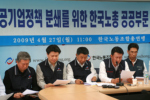 정부 출범 직후부터 '공기업 선진화'라는 이름으로 민영화 '폭탄'을 맞은 공기업의 수난은 최근까지 계속되고 있다. 민영화에서 간신히 빠져나가면 인력 감축 대상에 포함되고, 경제위기 극복을 위해 한국노총이 나서 '노사민정 대타협'을 선언한 직후 대졸 초임 삭감 얘기가 정부에서 나왔다.