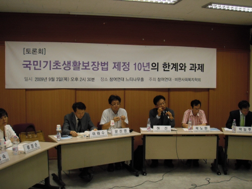 뒤따라 열린 토론회는 현행 기초생활보장법의 한계를 넘어서는 '또 다른 패러다임의 변화'를 위한 모색의 자리였다. 이영환 성공회대 사회복지학과 교수가 "국민기초생활보장법 제정 10년의 의미"라는 주제로 기조발제를 맡았고, 허선 순천향대 사회복지학과 교수와 이태수 꽃동네현도사회복지학과 교수가 "국민기초생활보장법 10년의 한계와 과제", "국민기본선 어떻게 확보할 것인가"라는 주제로 각각 발제를 했다. 그리고 곽노완 서울시립대 도시인문학 연구소 교수, 곽정숙 민주노동당 의원, 남기철 동덕여대 사회복지학과 교수, 류정순 한국빈곤문제연구소 소장, 박능후 경기대 사회복지학과 교수, 이찬진 변호사 등이 토론자로 참가했다.