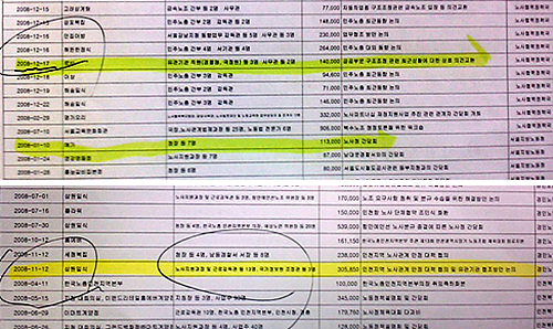 이런 행태는 '국정원이 국정감사 상황을 실시간으로 노동부로부터 보고 받고 있다'는 증거 자료가 폭로되면서 환경노동위의 국감이 파행으로 치달았던 지난해 10월 이후에도 달라지지 않았다. 한달 뒤인 11월 12일에는 경인노동청 노사지원과장 및 근로감독관 13명과 국정원 조정관 3명이 만나 총 30만5850원을 '노사관계 대책 협의'라는 명목으로 사용했다.
