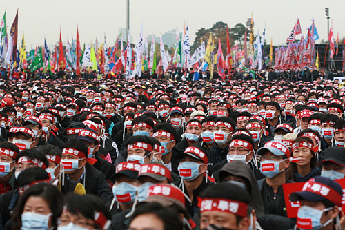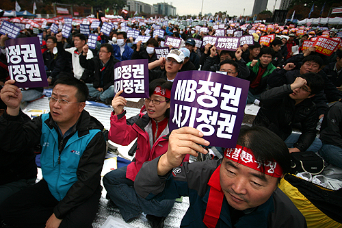 집행부 예상보다 많이 모인 민주노총 "노동 탄압 계속하면 6자회담 깬다"