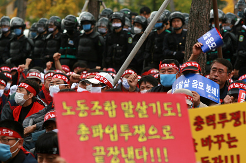 민주노총도 본격적인 총파업 준비에 들어간다. 임성규 위원장은 "언제까지 저들을 향해 1만 배 절을 하고 단식으로 호소해야 하냐"며 "지금부터 준비해 12월 중순 총파업에 들어가자"고 호소했다.