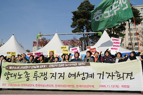 여성단체들 "현행법 시행되면 여성 등 취약계층 노조만 파괴될 것"