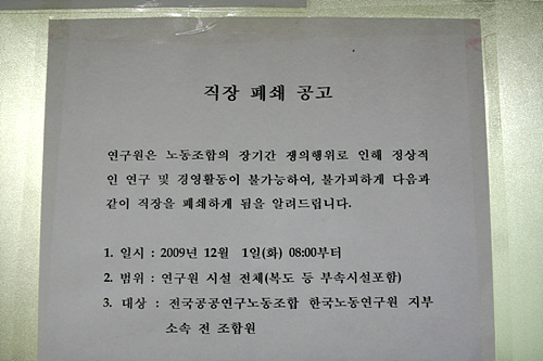 지위를 막론하고 박 원장의 이번 조치에 대해 비판적인 것은 이번 직장폐쇄가 위법하다는 인식을 전체 구성원이 같이하고 있기 때문이다. 지부와 연구위원협의회는 한 목소리로 "직장 폐쇄 철회와 단체교섭 잠정합의안 수용"을 촉구했다.