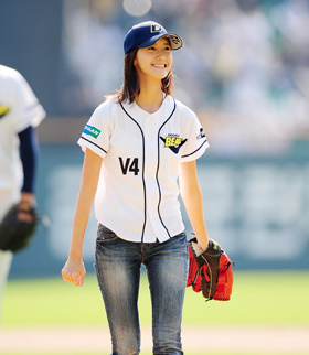 | ▲지난 10월 10일 프로야구 플레이오프 두산-SK 3차전의 시구자로 나선 걸그룹 소녀시대의 윤아. 남성들의 대중문화 소비 행태가 줄었다고 하지만 이 역시 단언하기 어렵다. 걸그룹 열풍의 근원에는 성인 남성들의 열광이 있었다. ⓒ뉴시스 |