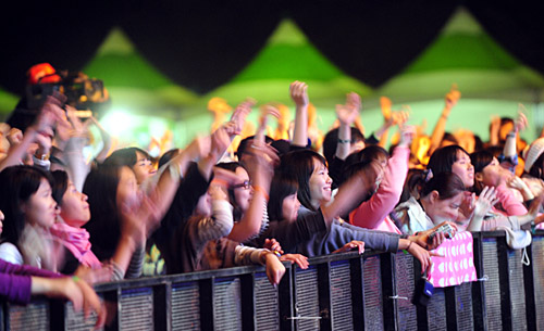 | ▲대중음악 공연장의 지배자는 여성이다. 그러나 그들을 지배하는 이는 남성 뮤지션인 경우가 많다. 그랜드민트 페스티벌을 참관하며 열광하는 여성 관객들의 모습. ⓒ뉴시스 |