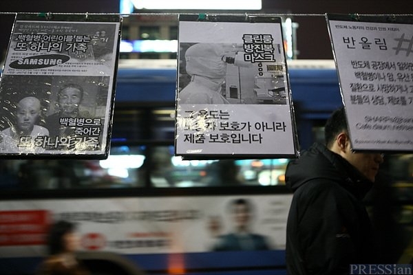 이 단체는 또 "노동자를 탄압하고 죽음에 이르게 한 삼성의 이건희 전 회장은 특별사면시킨 정권이 노동자의 죽음은 외면하고 비리와 불법을 저지른 재벌에 대해서만 치외 법권을 인정하고 있다"며 "이건희 회장에 대한 특별사면은 한국이 삼성공화국임을 보여주는 사례일 뿐"이라고 비난했다.