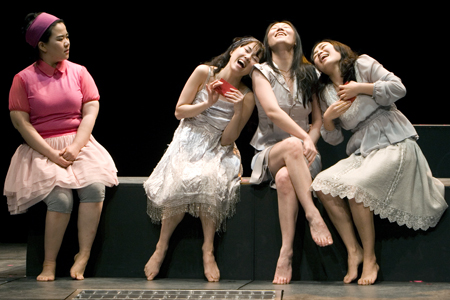 남들과 다르게 뚱뚱하고 어울리지 않은 옷을 입고 있는 안나는 사람들의 조롱을 받는다. 연극 '도시녀의 칠거지악'은 안나를 특별한 캐릭터로 설정해놓지 않았다. 연극은 아직도 세계여행을 꿈꾸는 안나가 바로 관객 자신임을 상기시킨다. 세상은 안나를, 아니 우리를 이렇게 부른다. 노처녀, 그리고 도시녀. 이 작품은 도시녀가 가진 일말의 희망이 과연 죄악인가를 묻는다. 그리고 도시녀가 가진 일곱 가지 죄악이 우리를 뒤처지게 만든다면 한 반짝 물러나 걷는 것도 괜찮을 것 같다고 슬쩍, 귓속말로 속삭인다. 연극 '도시녀의 칠거지악'은 세태를 풍자하고 비틀면서도 세상의 안나들에게 파이팅 외치기를 잊지 않았다. 우리들의 자화상 안나는 오늘도 발레연습을 하고 있다.