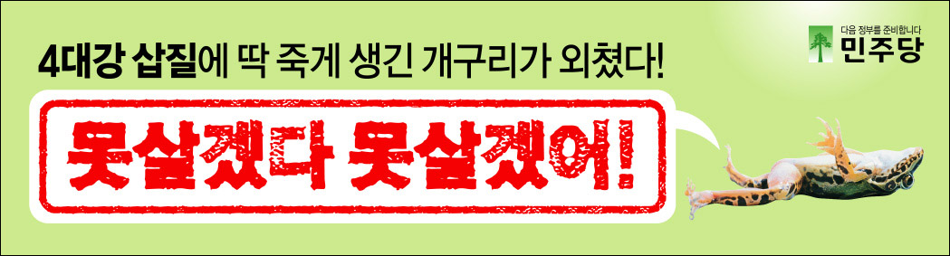민주당의 정책광고는 당의 지방선거 슬로건인 '못 살겠다 갈아보자'를 변용해 4대강 사업을 비판하는 "못 살겠다 못 살겠어", 무상급식과 관련된 '못 먹겠다 못 먹겠어' 등 4가지 안이다.