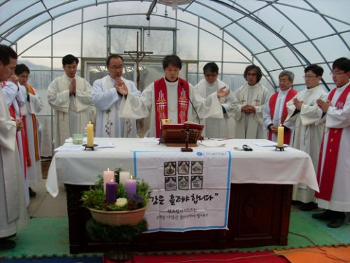 ▲ 지난 13일 4대강 사업 지역인 팔당에서 열린 미사. ⓒ프레시안(선명수)