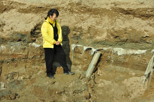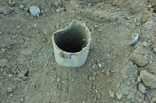 | ▲ 경인운하 김포터미널 공사 현장에서 발견된 관정. 제대로 폐공 처리를 하지 않은 채 불법 매립됐다. ⓒ김진애 의원실 제공 |