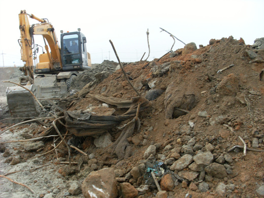| ▲ 경인운하 물류단지인 김포터미널 공사 현장에서 발견된 불법 폐기물. ⓒ프레시안(선명수) |